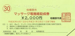 相模原市では「はり・きゅう・マッサージ施術料助成」という制度があり、