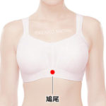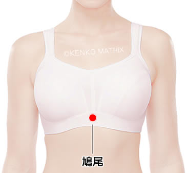 位置:左右の肋骨が合わさっている最上点から下がったところに突起(胸骨剣状突起)があります。この先端のすぐ下がツボです