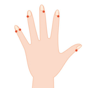 井穴は手足指先の爪の生え際にあります。両手で12か所、両足で12か所あります!